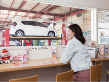 1日車検 最短45分ご依頼整備も即日完成。お忙しい方には最短45分の店舗待合型車検も完備。