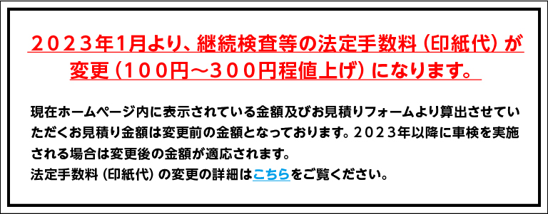 ①車検基本整備料金・②諸費用(自賠責保険、自動車重量税、印紙代)・③メンテナンス整備料金(交換部品代と作業料金)①と②はホームページ又はお電話、又はご来店頂ければ料金をご案内させて頂きます。