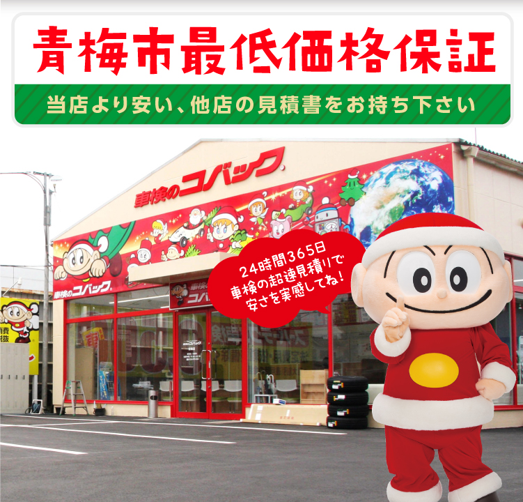 追加整備低価格保証万一、当店よりも安い見積書がありましたらその料金より10%分をキャッシュバックさせて頂きます。