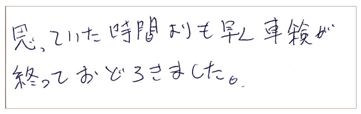 思っていた時間よりも早く車検が終わって驚きました。青梅市 A.N.さま