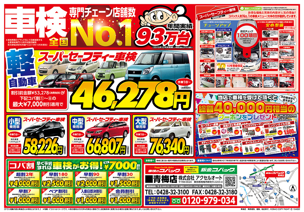 ※ガソリン代50kmまで無料 ※スーパーセーフティー車検のみに限ります。